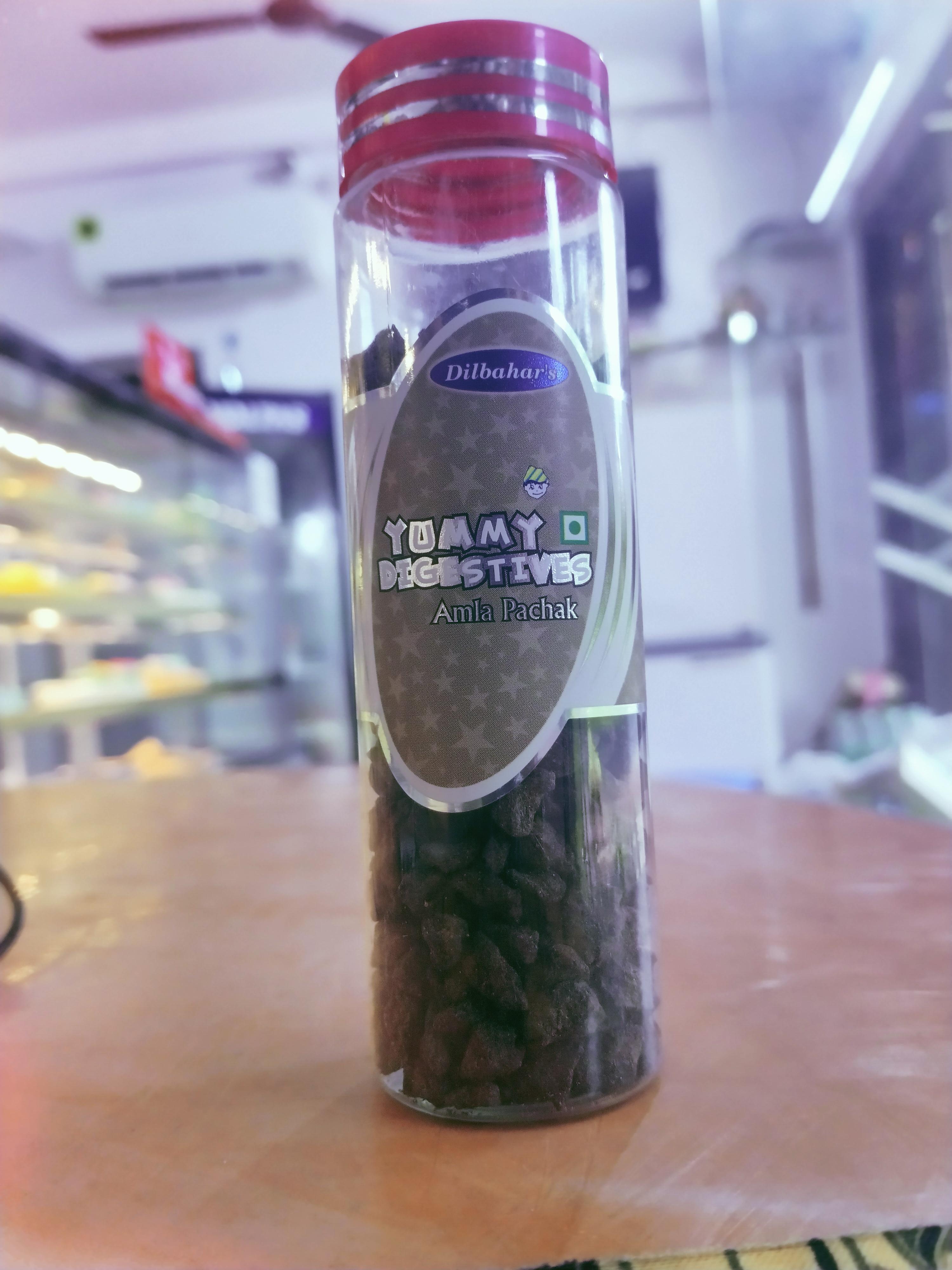 Dilbahar Yummy Digestives Amla Pachak is an Ayurvedic digestive mukhwas, or after-meal mouth freshener, made primarily from sun-dried Indian gooseberries (amla) with a blend of digestive spices, resulting in a tangy, sweet, and slightly sour taste . It is known to aid digestion, relieve acidity and gas, and act as an appetizer due to its richness in Vitamin C and other antioxidants. The product is made with natural ingredients and is free from artificial colors and preservatives, making it a nutritious and wholesome treat for gut health.